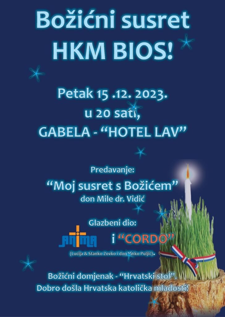 Susret Hrvatske katoličke mladeži održat će se u petak 15. prosinca 2023. godine u 20 sati u Hotelu Lav u…