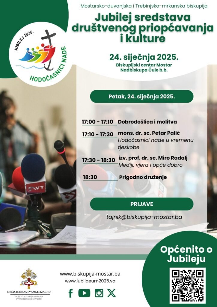 Mostarsko-duvanjska i Trebinjsko-mrkanska biskupija poziva na Jubilej sredstava društvenog priopćavanja i kulture, koji će se održati u Biskupijskom centru u…