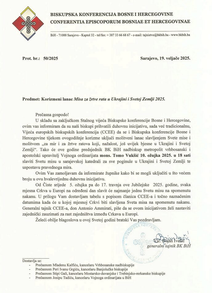 U skladu sa zaključkom Stalnog vijeća Biskupske konferencije Bosne i Hercegovine, naši biskupi su prihvatili duhovnu inicijativu Vijeća europskih biskupskih…